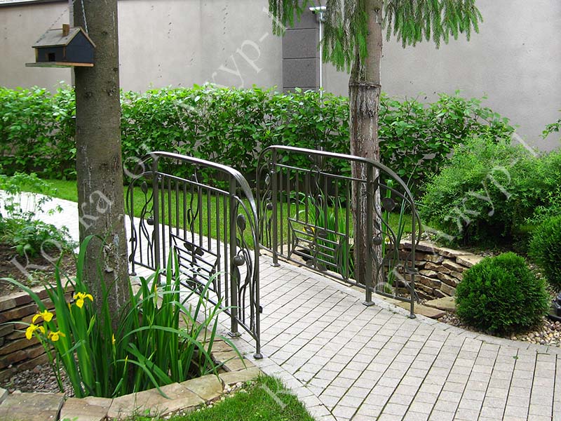 Кованые мостики стали часто использоваться в ландшафтном дизайне. Устанавливаются они в парках, скверах, садах. Вблизи речек и озер.